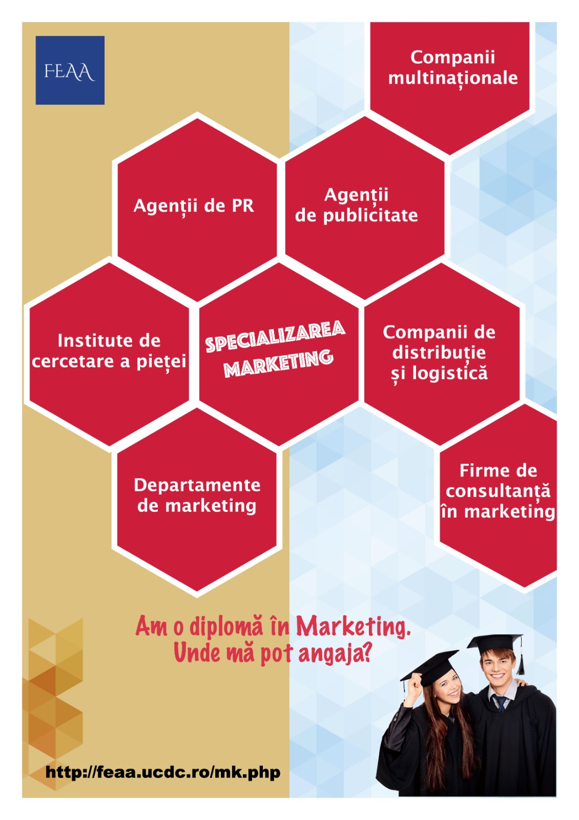 Specialist marketing, Manager de produs, Referent de specialitate in marketing, Organizator de protocol, Organizator targuri si expozitii